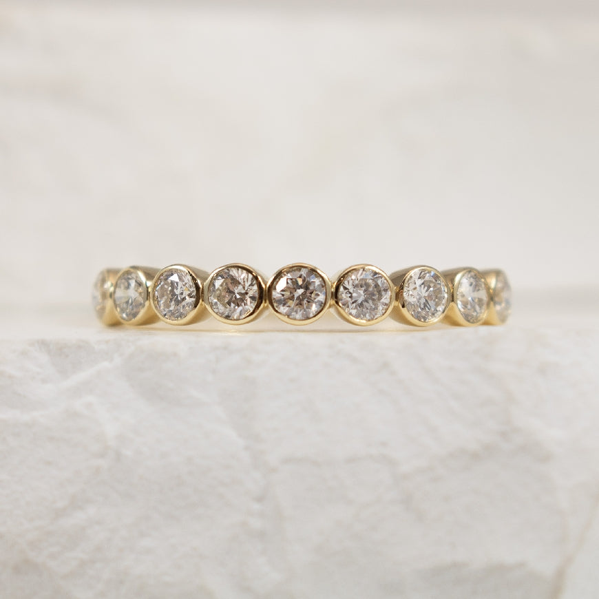 14K Yellow Gold Round Brilliant Cut Bezel Set Band