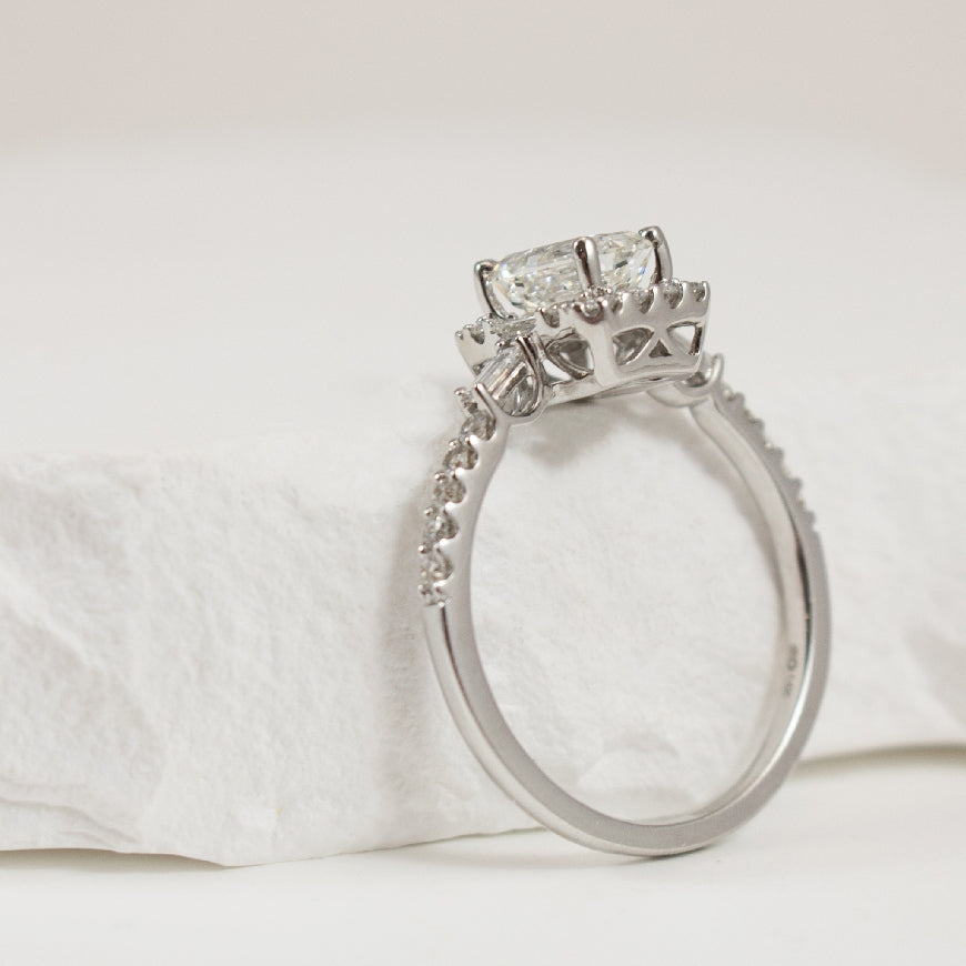 14KW Emerald Cut Halo Diamond Engagement Ring
