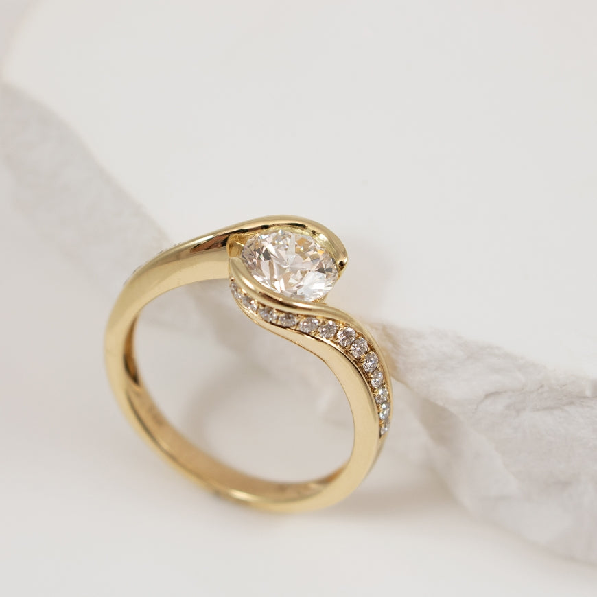 14KY 1.00CT Twisted Bezel Diamond Engagement Ring