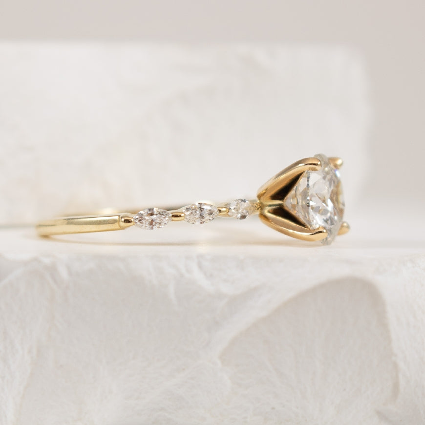 14K Yellow Gold S.Kashi Round Brilliant & Marquise Cut Lab Grown & Natural Diamond Accented Engagement Ring