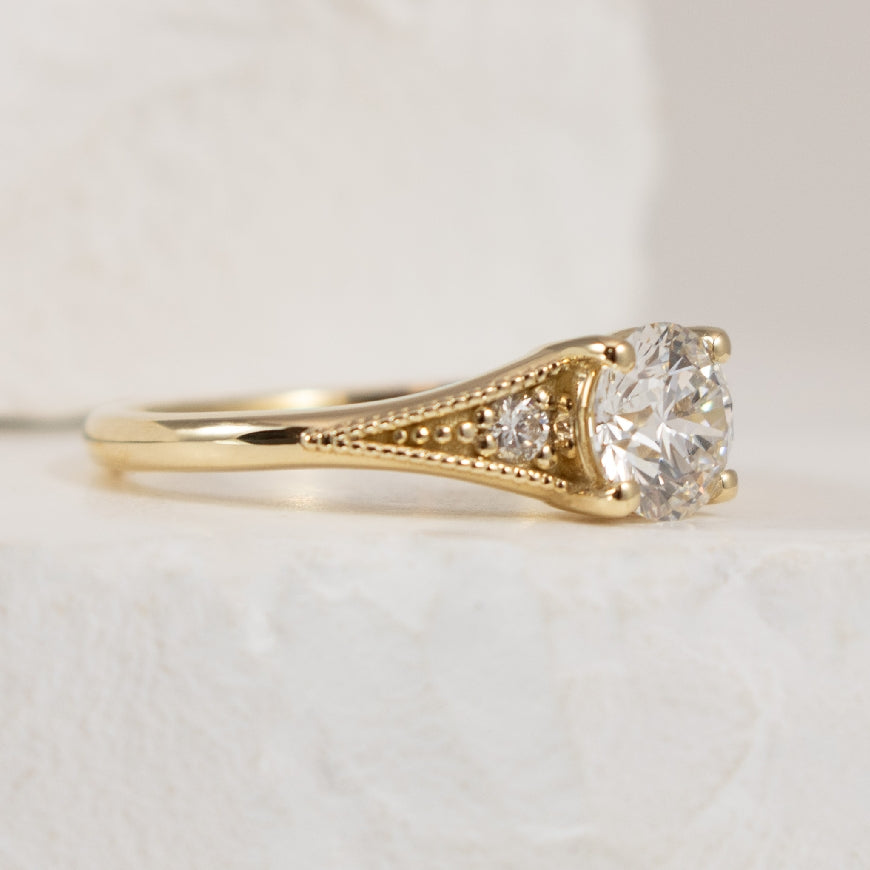 14K Yellow Gold Lab Grown & Natural Diamond Vintage Millgrain Engagement Ring
