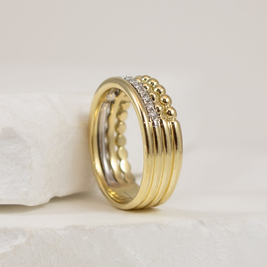 14K Yellow Gold Breuning Natural Diamond Multi-Layer Ring