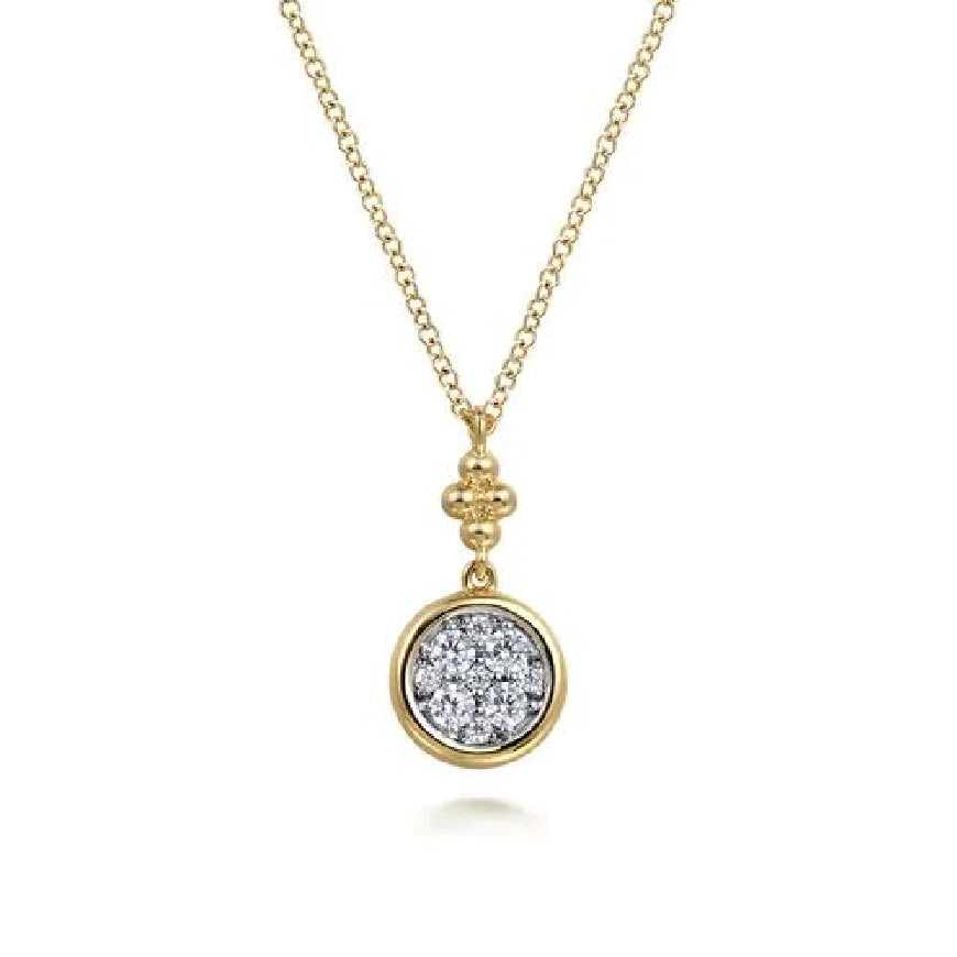 14K Yellow & White Gold Bujukan Cluster Diamond Drop Necklace