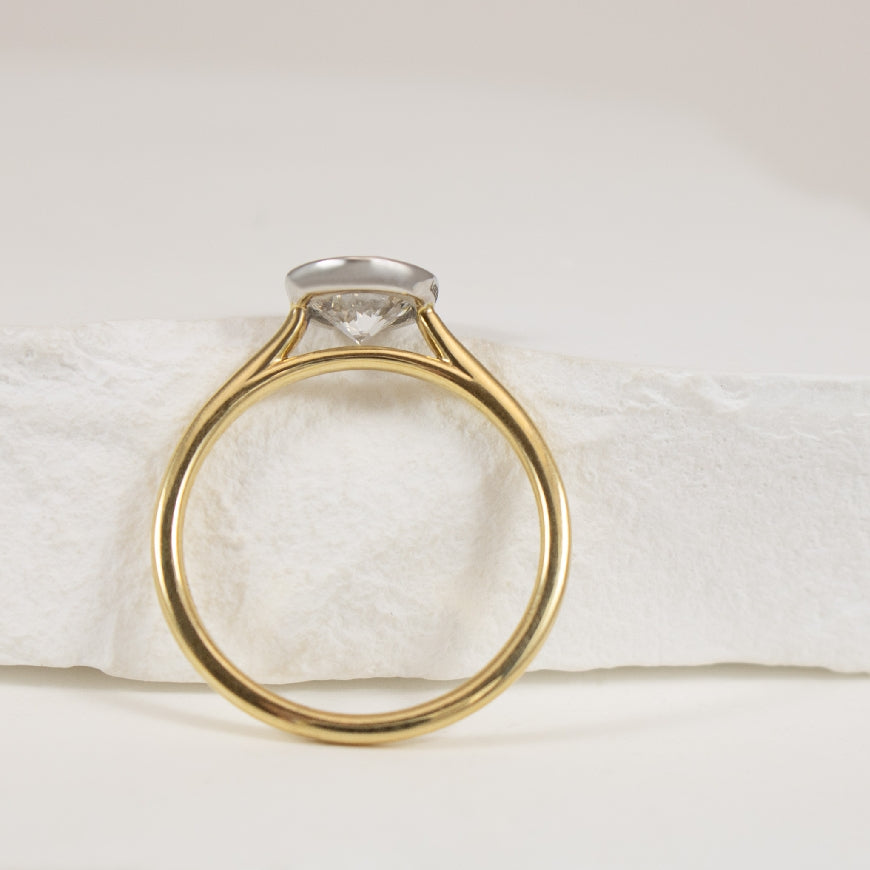 14K Yellow & White Gold Lab Grown Diamond Round Brilliant Cut Bezel Solitaire Engagement Ring