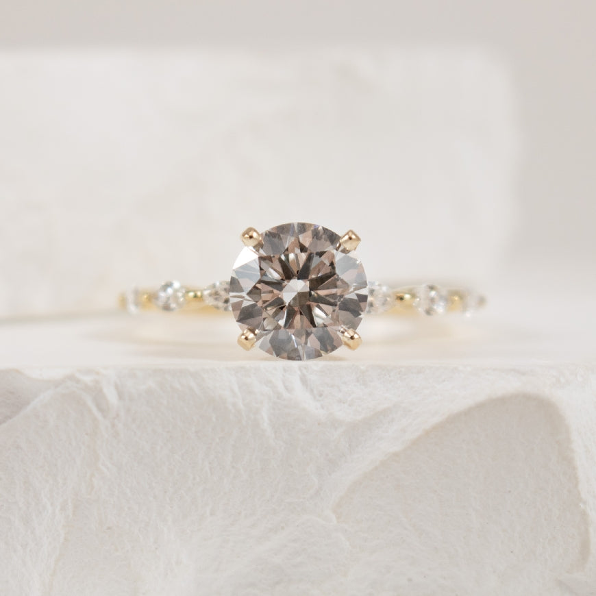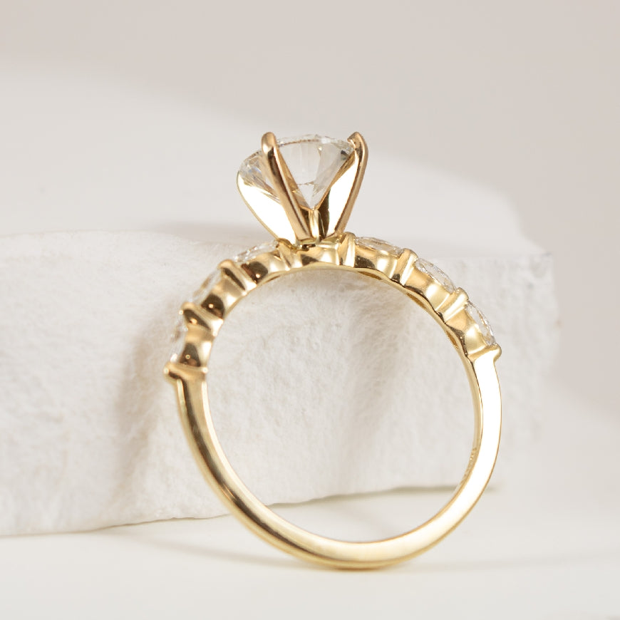 14K Yellow Gold S.Kashi Round Brilliant & Marquise Cut Lab Grown & Natural Diamond Accented Engagement Ring