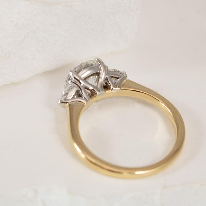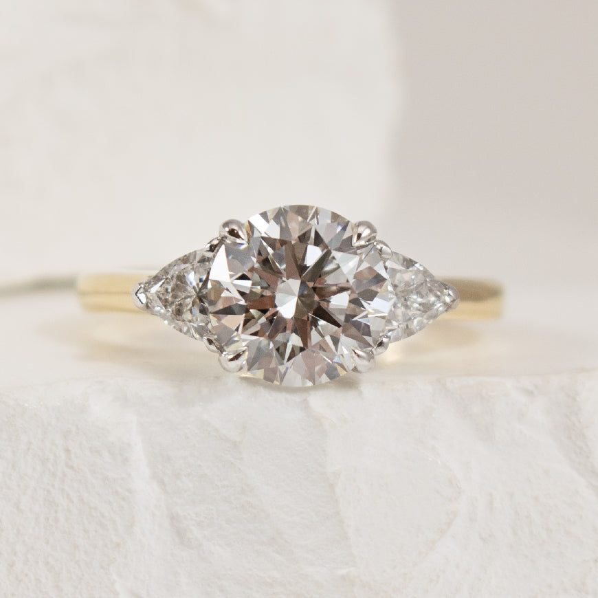14K Yellow & White Gold Round Brilliant & Trillion Cut Lab Grown Diamond Three Stone Engagement Ring