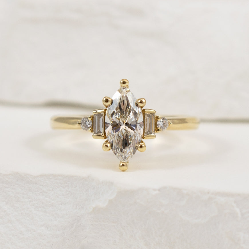 14K Yellow Gold Marquise Cut Lab Grown Diamond Accented Engagement Ring