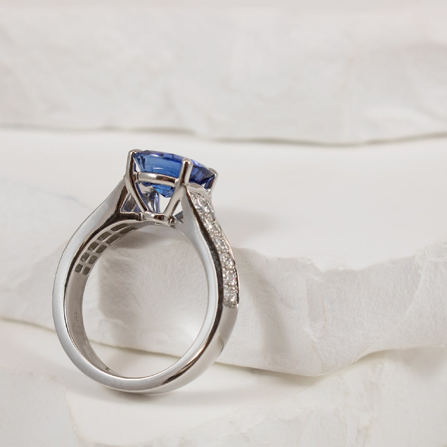 3.05 Carat of Natural Cushion Cut Sapphire Eye-Clean 'Medium Tone Bright Violetish Blue'