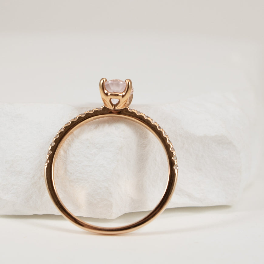 14KR Oval Cut Morganite & Diamond Accented Ring