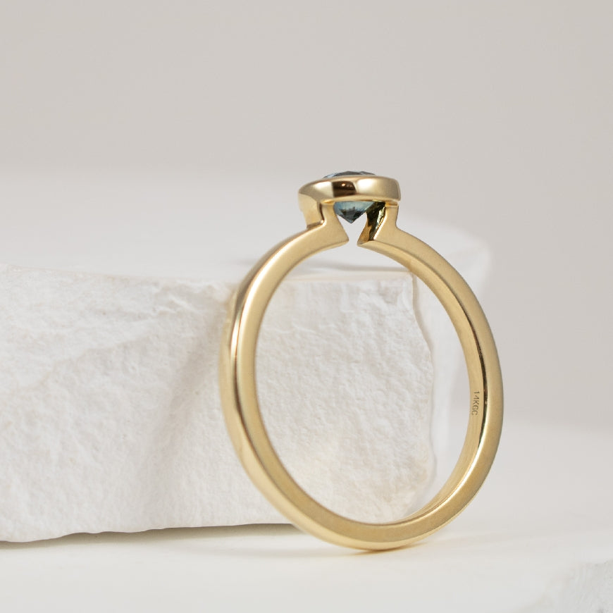 14K Yellow Gold Montana Sapphire Bezel Set Ring