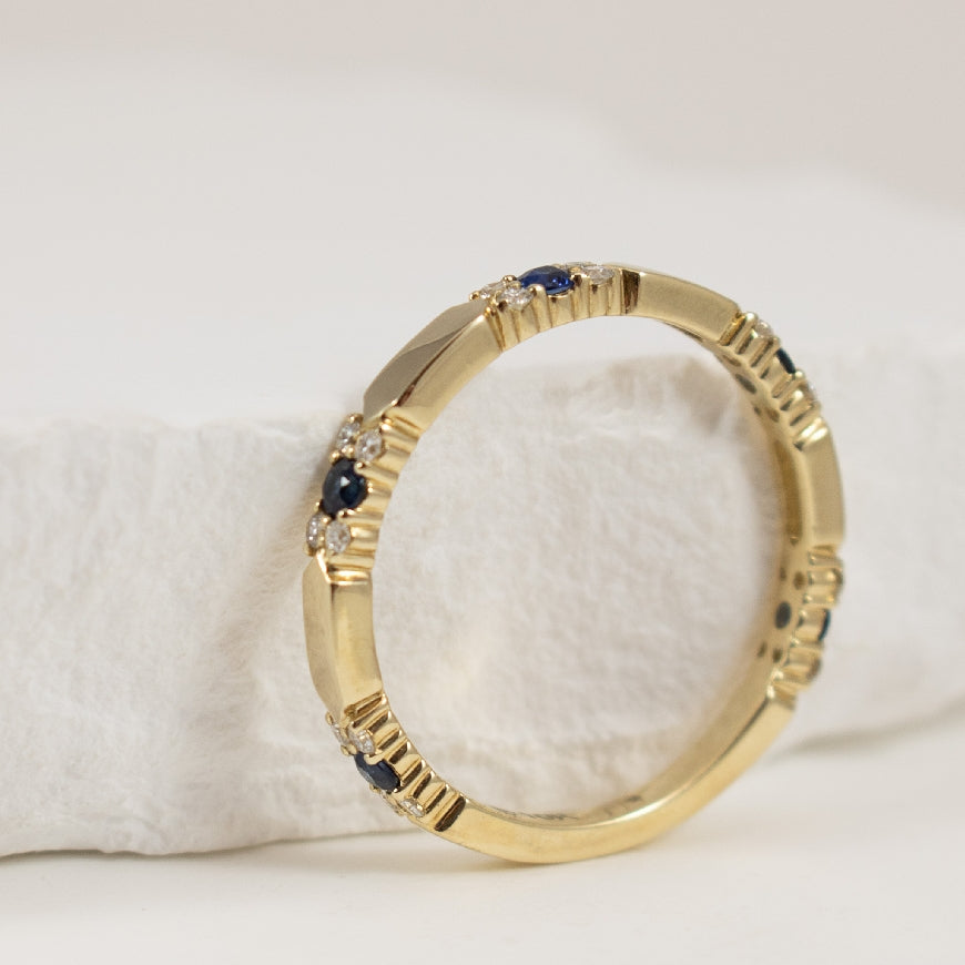 10KY Elongated Hexagon Bar Sapphire & Diamond Band