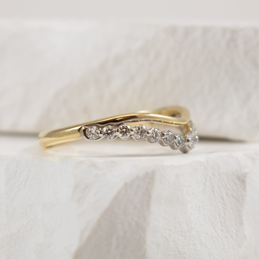 14K Yellow & White Gold Natural Canadian Diamond Double Layer Contour Band