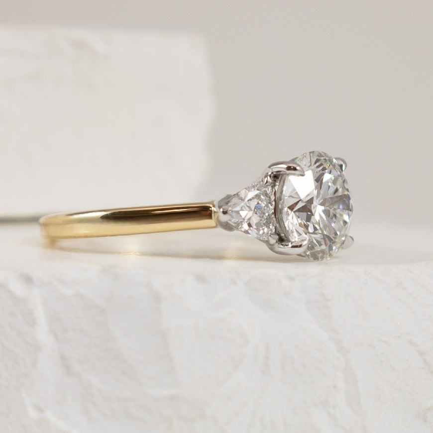 14K Yellow & White Gold Round Brilliant & Trillion Cut Lab Grown Diamond Three Stone Engagement Ring