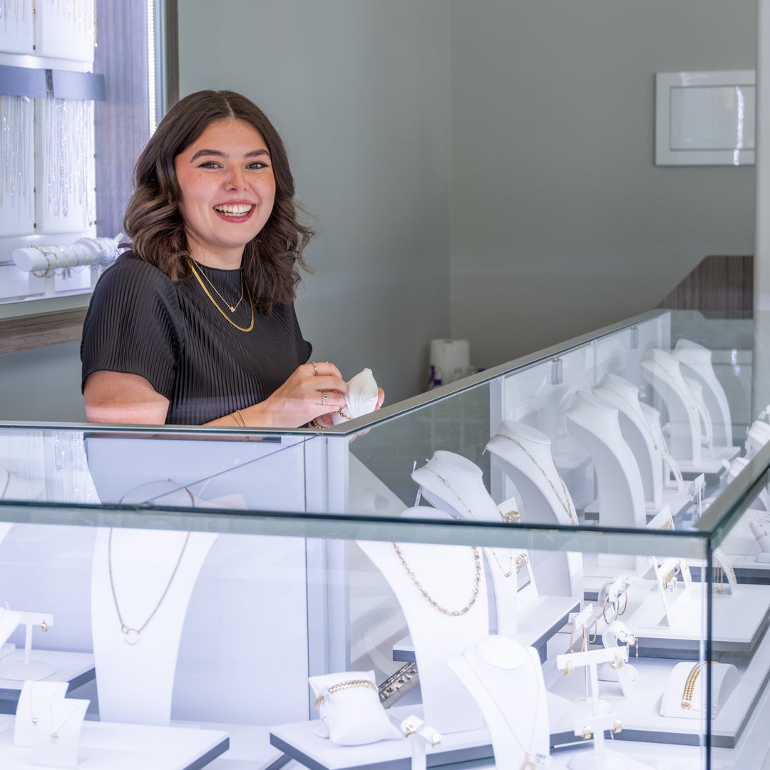 Our store owner, Kim, is a long-time board member and Past President of the Canadian Jewellery Group, Canada’s largest buying group. Through the Canadian Jewellery Group, we gain the buying power of over 115 store, giving us the same purchasing power as the big chain stores, purchasing our jewellery at competitive prices, but not giving up the unique selection that shopping an independent retailer brings you. Our customers enjoy quality jewellery, a curated selection, and competitive prices all with the benefit of local ownership and service!