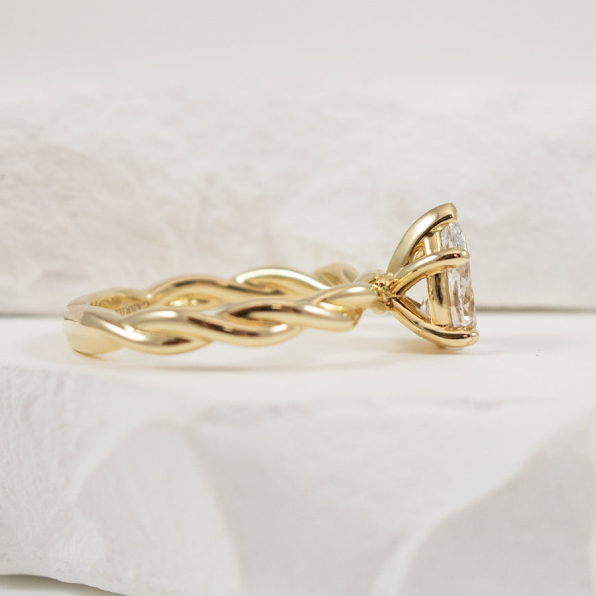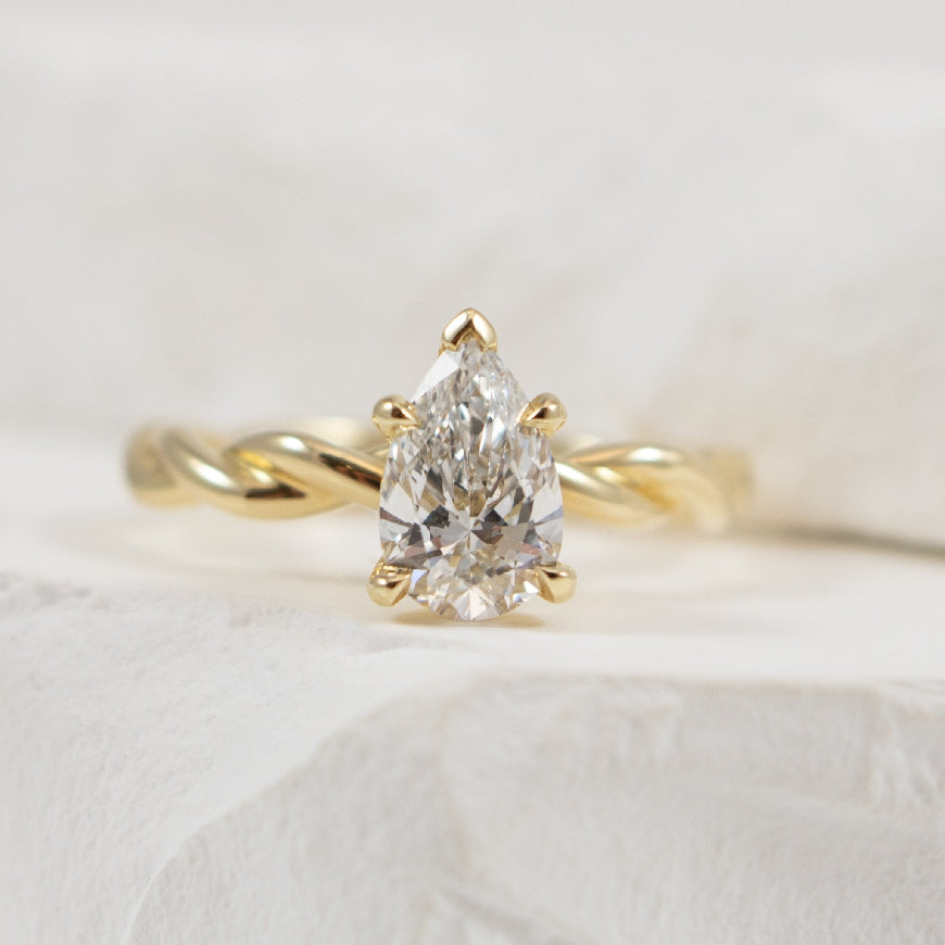 14K Yellow Gold Gabriel & Co. Pear Shaped Lab Grown Diamond Solitaire Twist Ring